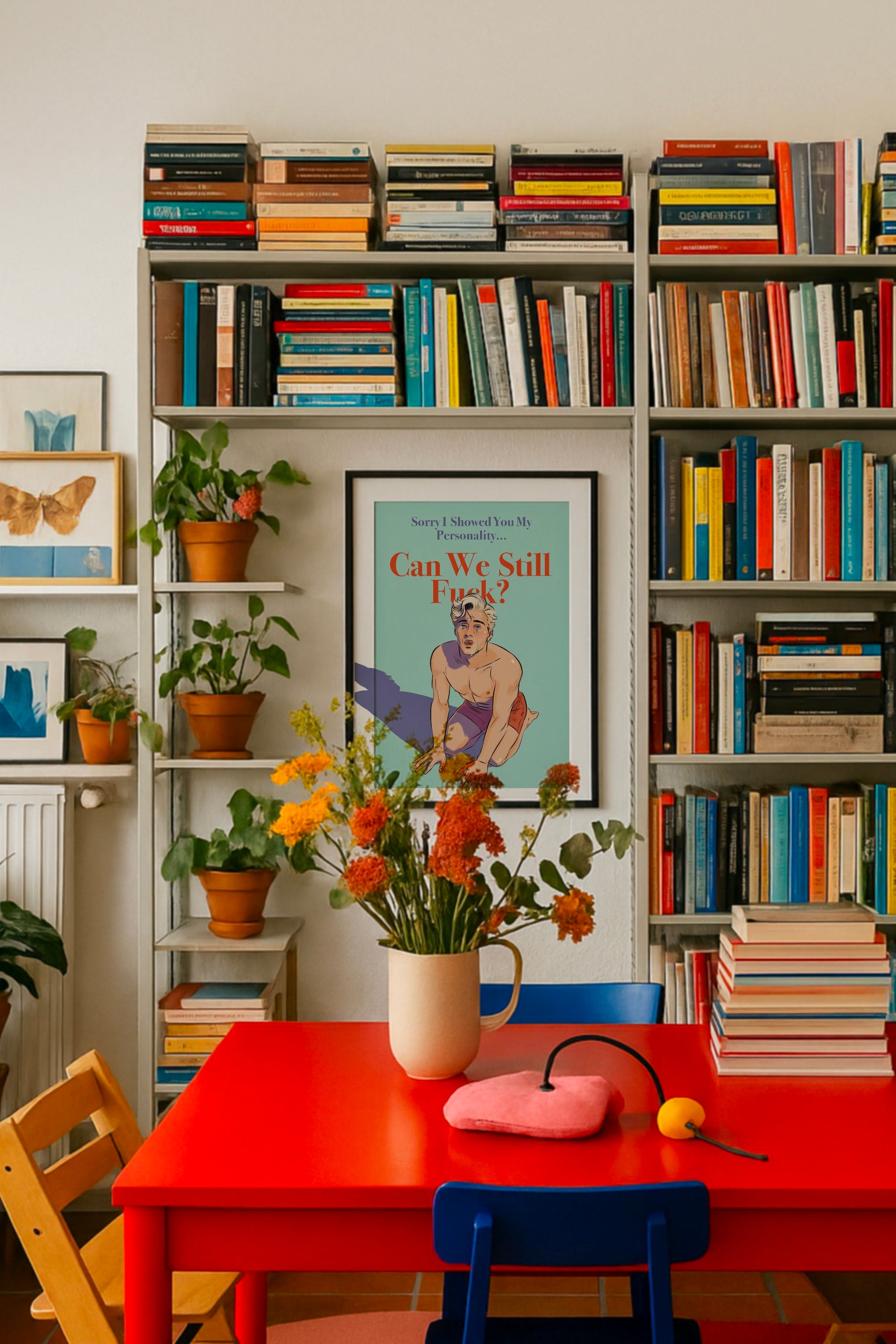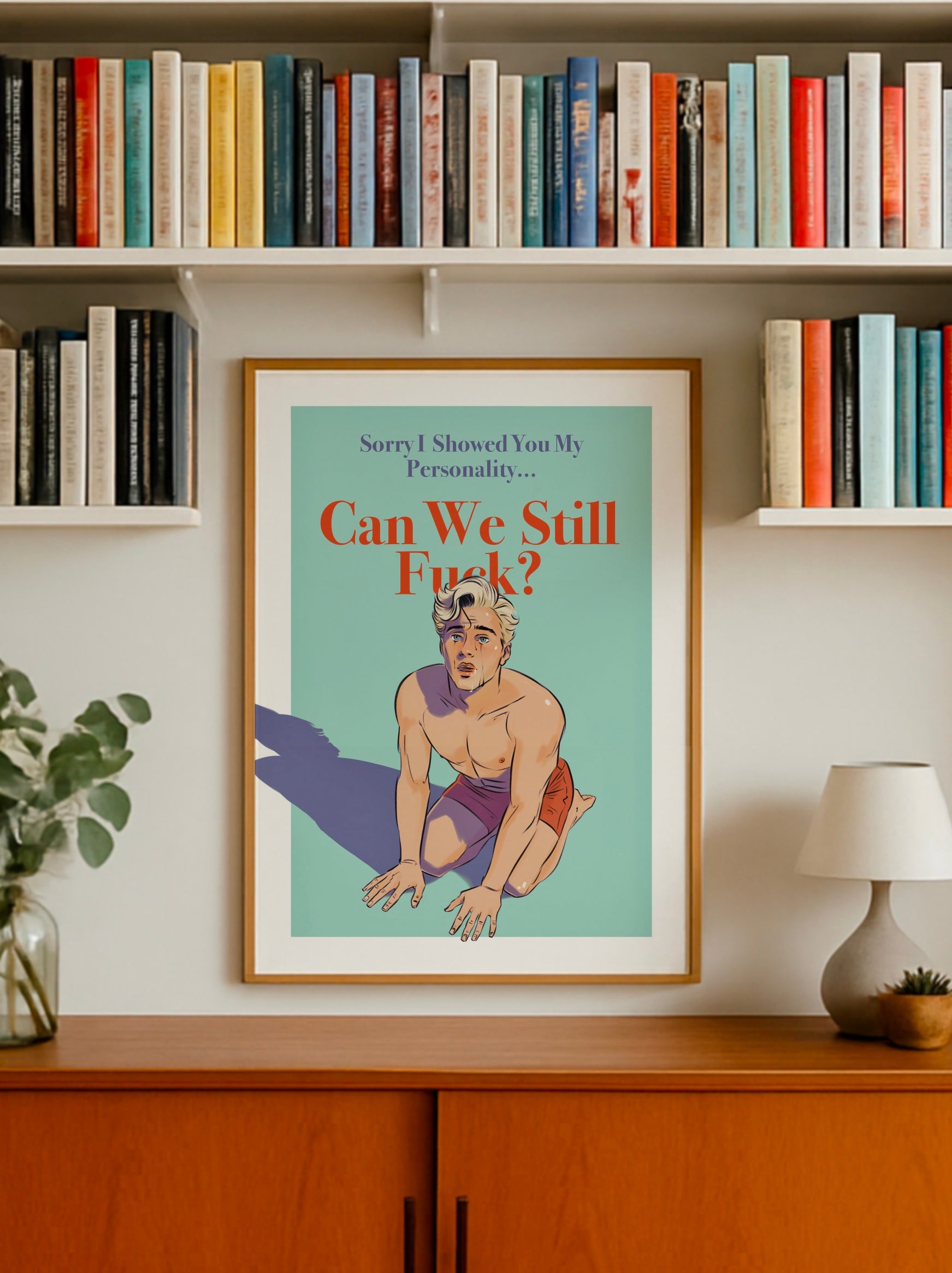 This original illustration poster with a funny slogan has a retro erotic vibe, perfect for adding a touch of humor to any room. Ideal for adults looking to decorate their space with a unique and edgy design. Relevant for occasions like birthdays, housewarmings, or just as a fun treat for yourself.