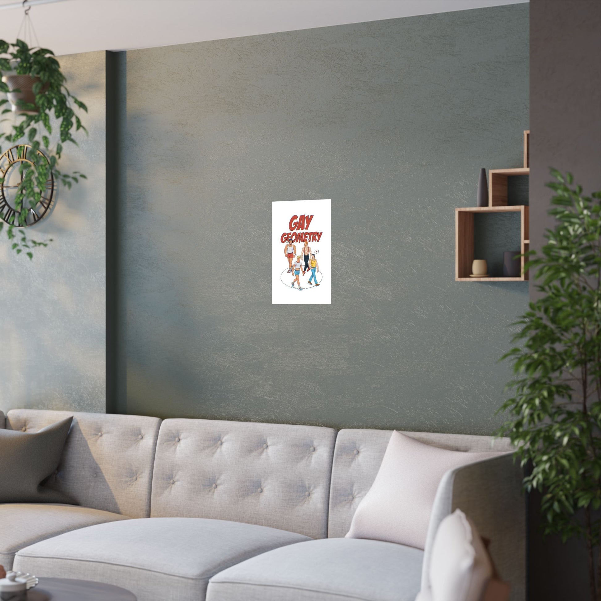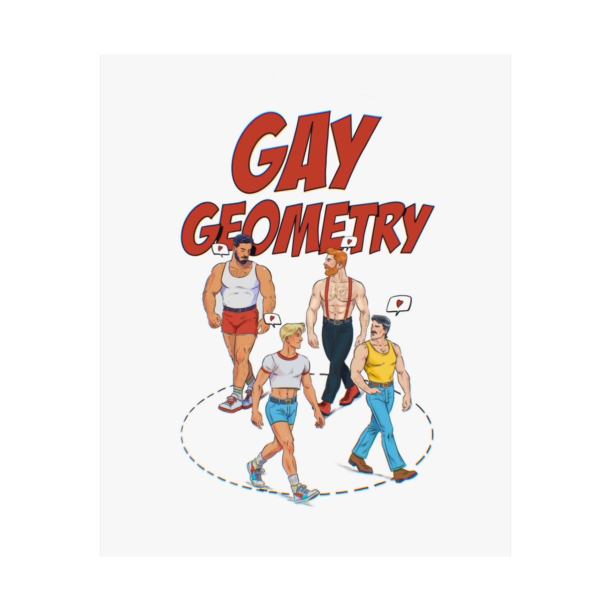Vibrant and original poster depicting the geometry of gay attraction, perfect for adding a pop of color and uniqueness to any space. Relevant to the LGBTQ+ community, ideal for Pride Month celebrations and year-round decor.